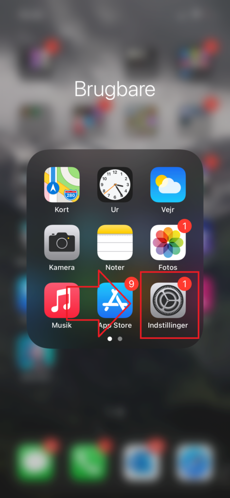 Lokaliser og åben appen “Indstillinger” som viser en form for tandhjul, som ses til højre på billedet