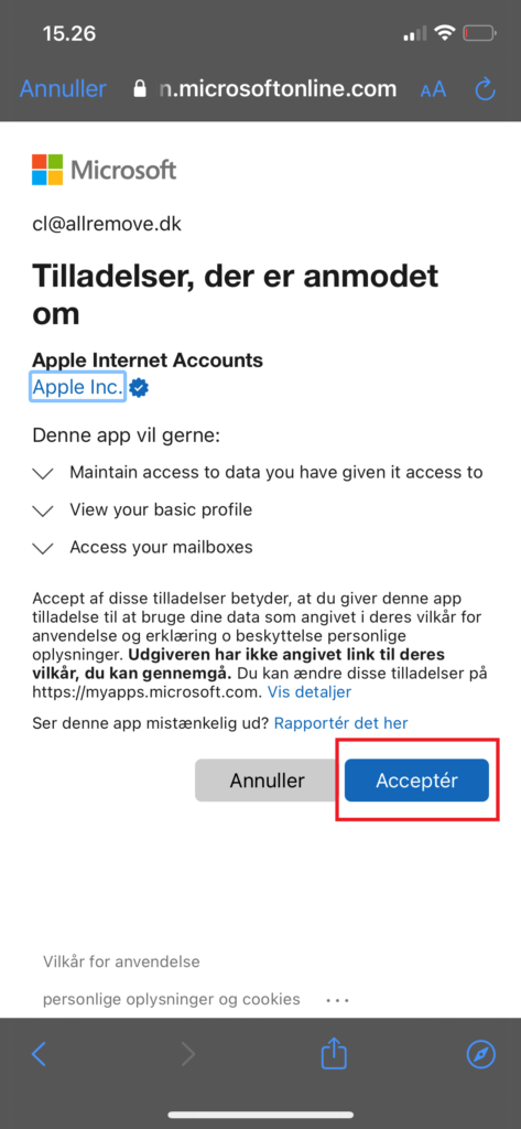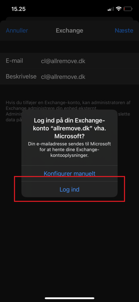 BEMÆRK! BEMÆRK! BEMÆRK! Vil du også se dine delte postkasser på din telefon? Så brug i stedet appen “Microsoft Outlook” – du finder den i AppStore og den er HELT GRATIS! Den er så nem at bruge at du ikke engang behøver en guide!
