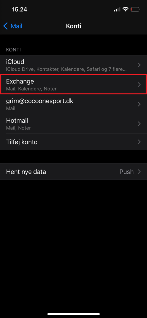 Vælg din All Remove konto. Den kan have navnet “Exchange”, “All Remove”, din email eller noget helt fjerde. Du kan finde ud af det nemt ved at gå ind på en konto og se hvilken email der står i toppen. Står der din arbejdsemail i toppen, er du inde på den korrekte konto!
