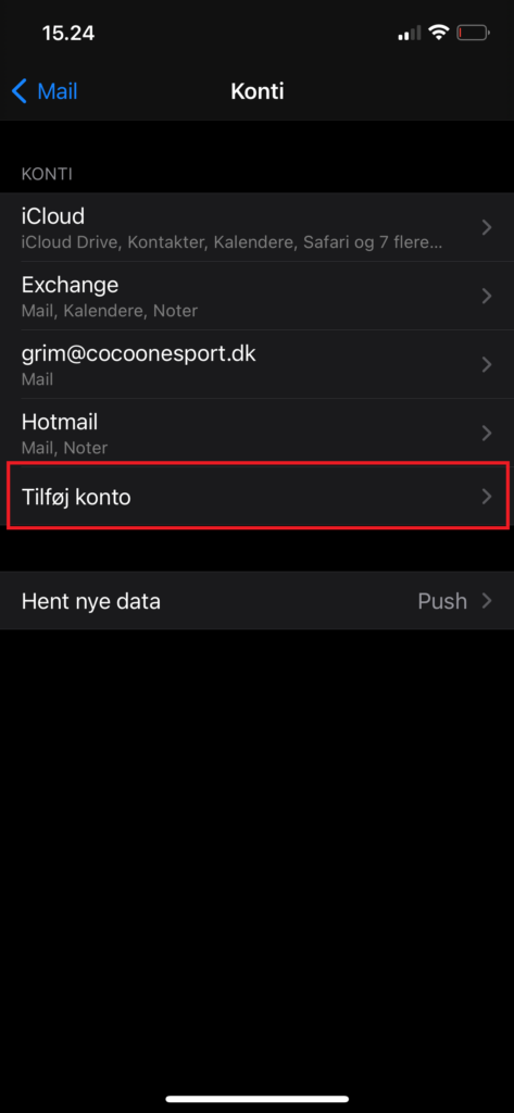 Når du nu har slettet din konto, så tilføj en ny ved at trykke på “Tilføj konto”