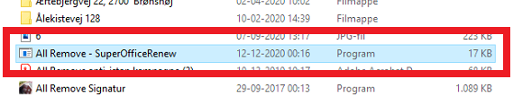 Tilgå “Fælles”-drevet (eller “X”-drevet) og lokaliser filen “All Remove – SuperOfficeRenew”. Dobbeltklik på denne for at køre filen